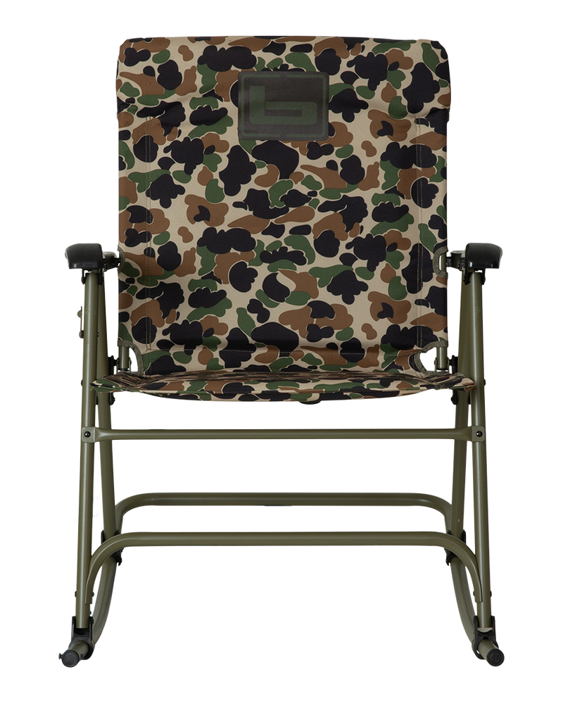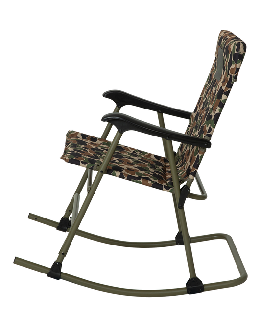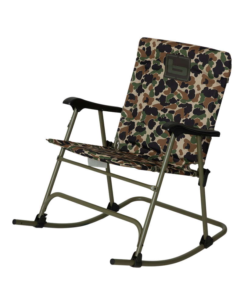 The Hot-Seat, the type that incites a multi-person free-for-all sprint to lay claim. Every household should store a couple of these unbelievably comforting, lightweight, and durable folding rocking chairs with your favorite Banded logo displayed over camo and solid color options. Easily folds and locks flat for simple storage and easy transportation. Feel the mind-blowing difference of a Lawn Chair that ROCKS, and you'll never go back to sitting stationary again.