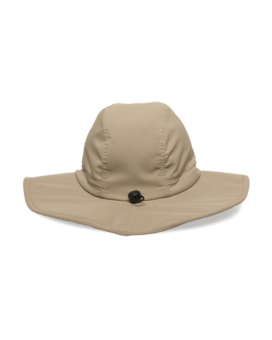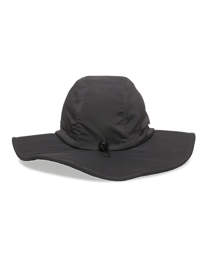 Stylish sun protection, the hat is lined with mesh and has vents on both sides of the crown for cooling. An adjustable drawstring equipped with a quick-slide toggle secures the hat around neck.