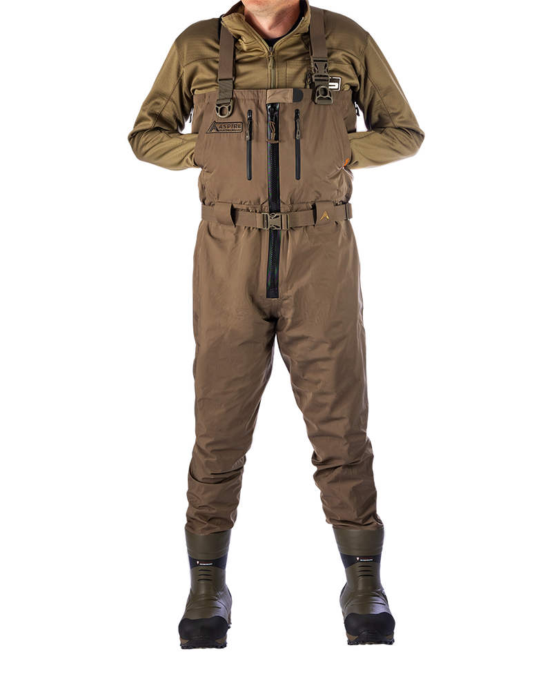 Aspire Catalyst Breathable Wader features eVent® waterproof-breathable technology — the most breathable-waterproof membrane available. Arc-Welded stitchless design shaped with anatomical seam-mapping that mirrors body movement with minimal seam fatigue. Featuring a new streamlined fit that minimizes bulk for maximum mobility. The boot is packed with PrimaLoft boot insulation and built around an industry-first PrimaLoft Aerogel boot insert to keep feet insulated, even while standing in the most severe, frigid cold water. To top it off, Banded Aspire waders are protected with a 3-Year AspireArmor+ Guarantee: no-hassle returns/repair process covers defects in workmanship and materials.
