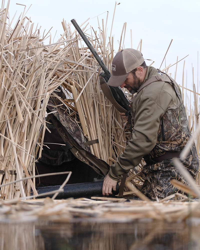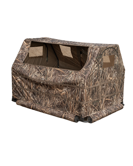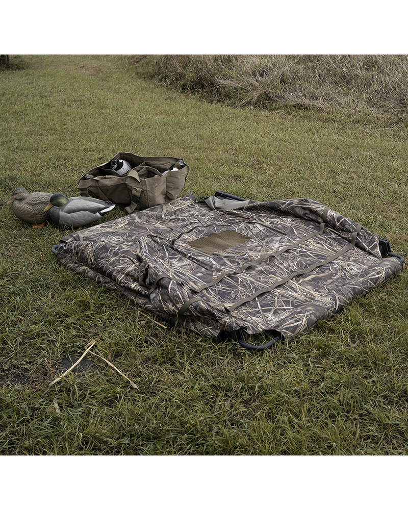 When the water rises and cover is sparse, the Finisher Floating Blind keeps you hidden, dry, and locked in the hunt. Designed to fit two hunters, this lightweight blind features a rugged foam flotation system and mesh view windows for 360-degree awareness. Integrated stubble straps make brushing in a breeze, while the compact fold-down profile makes it easy to haul and deploy. Whether you’re tucked in a timber hole or drifting through marshes, this blind is your mobile concealment system.