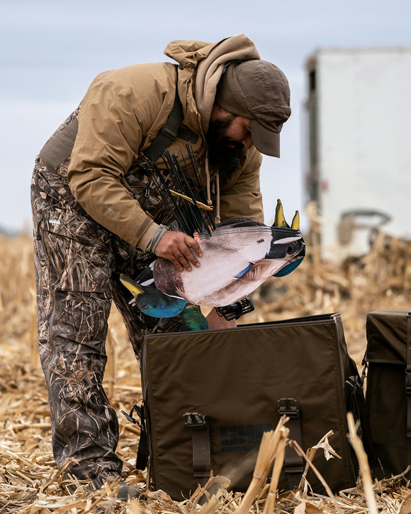 Pro Grade Duck Silhouette Decoys combine portability and durability into a highly effective and easy to deploy/store decoy system. Featuring attractive and unique postures with highly detailed photographic print to display lifelike movement and behavior. The matte-finish print absorbs light and reduces the risk of birds flaring from sun glare.