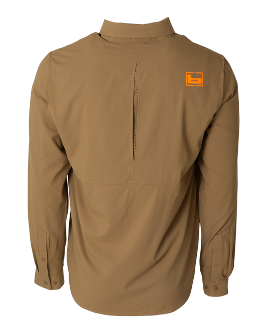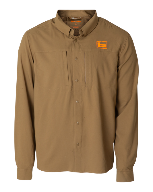 The FieldStone Upland Shirt delivers a perfect balance of rugged durability and modern performance. Constructed from an updated 4-way stretch fabric, it moves with you stride for stride, no matter the cover you’re busting through. Breathable and moisture-wicking, it keeps you cool and dry in the heat of the hunt, while a DWR water-repellent finish shrugs off light rain and dew.