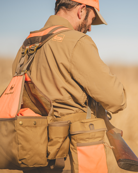 Fully articulated shoulders and arms ensure unrestricted swing and mount, whether you’re working dogs, flushing birds, or shouldering your shotgun. A snap-button front makes for quick on-and-off, and hidden zippered chest pockets provide secure storage for the essentials. At 19.5 oz, it strikes the ideal weight for all-day comfort and durability.