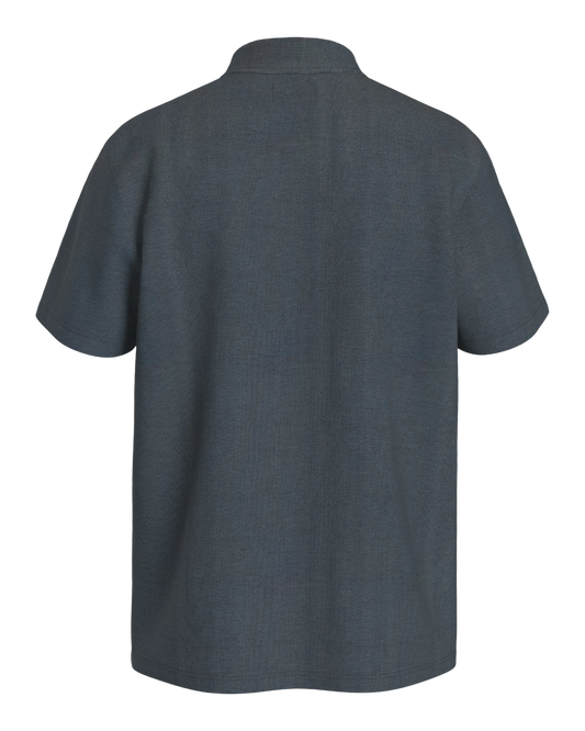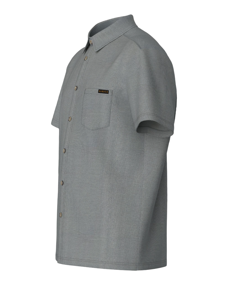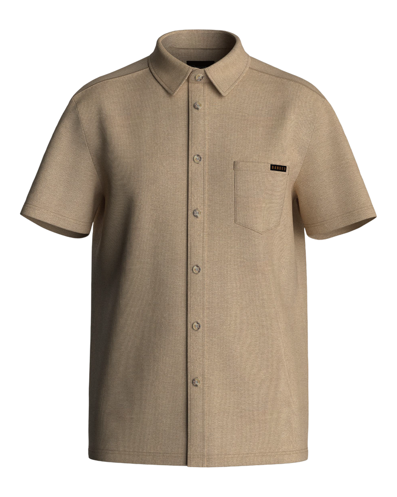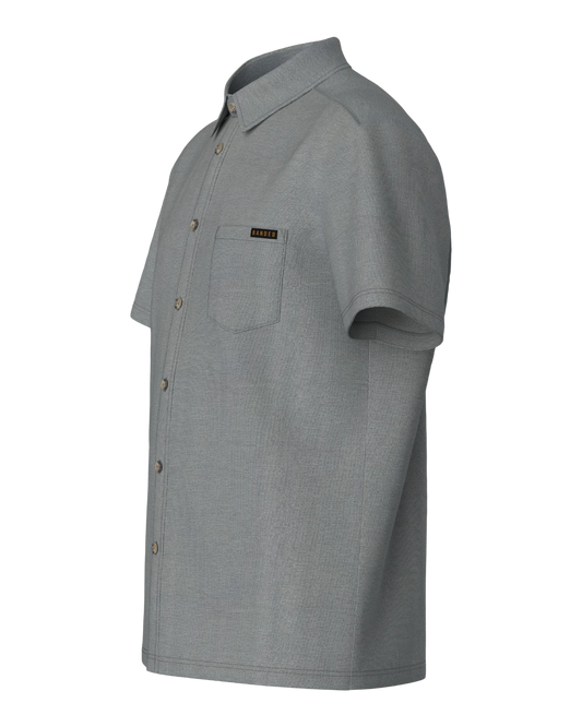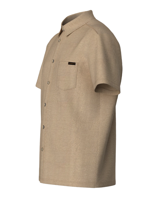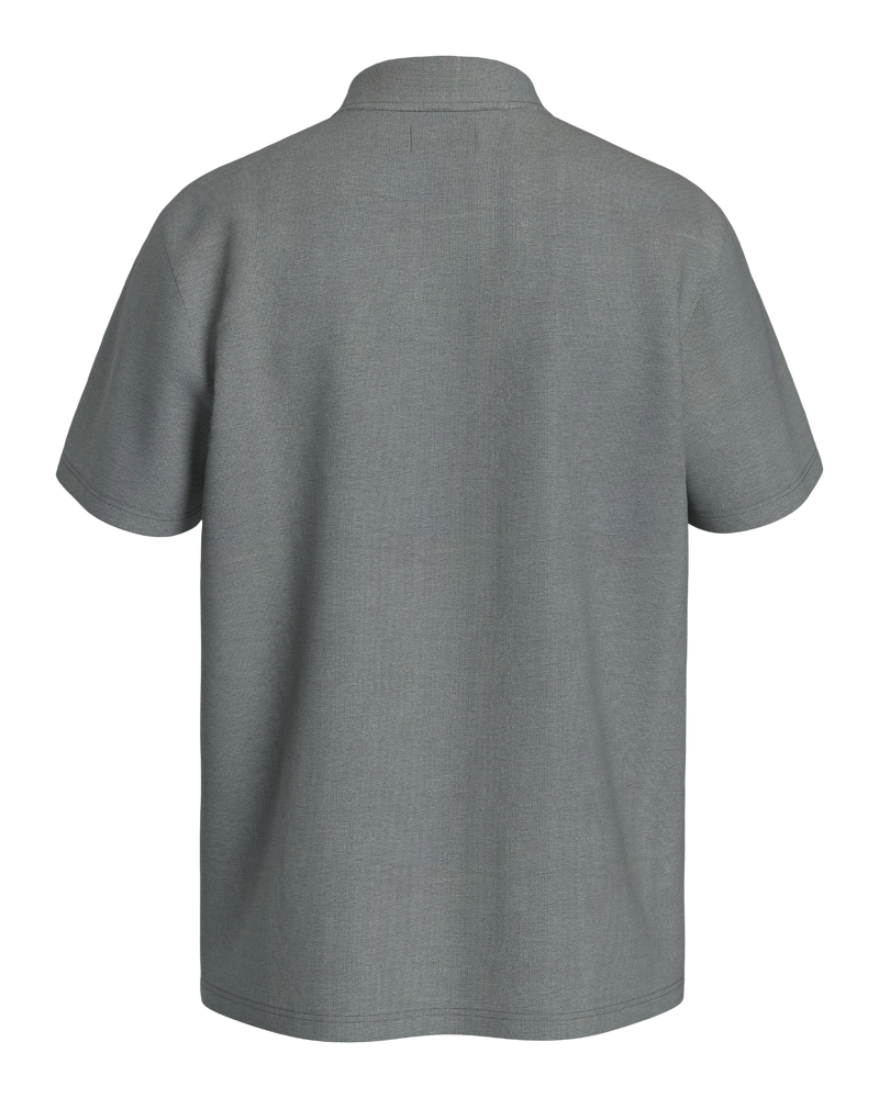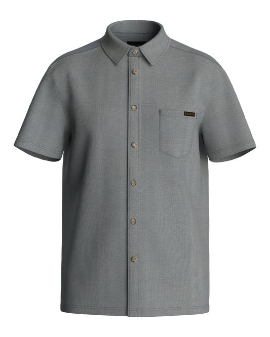 Meet the button-down that feels nothing like one. The Pallisade Button Down redefines what a collared shirt can be—crafted from a breathable knit performance blend of 67% polyester, 27% rayon, and 6% spandex that stretches, wicks moisture, and resists wrinkles.
