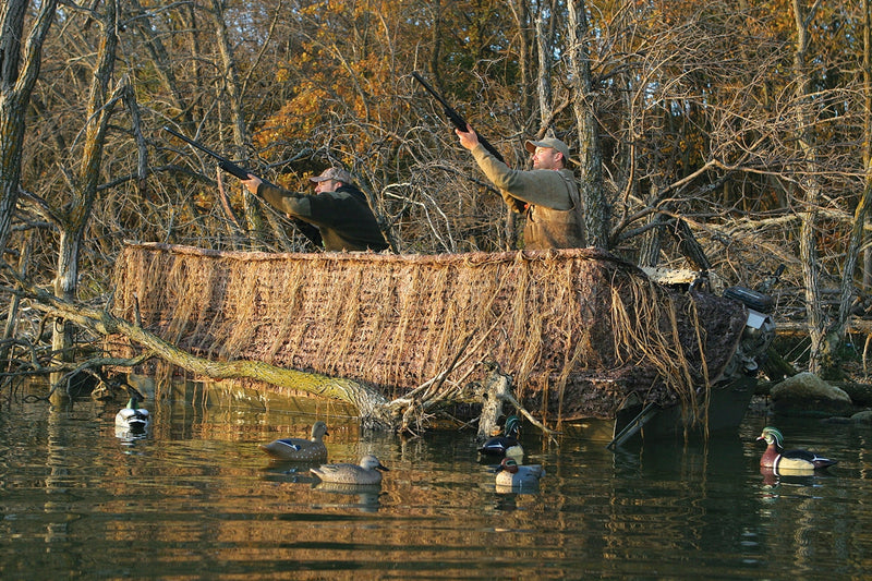 The product that started it all! Avery Outdoors began with the vision to build products for waterfowl hunters created by waterfowl hunters. Our first effort was the QuickSet® Boat Blind, one of the best-selling blinds of its kind ever. An all-aluminum frame construction eliminates rust in a light and easy to use package. Couple that with our WindBlocker and CamoNet and you have the complete QuickSet® Boat Blind Kit. This kit includes everything you need to turn your boat into an invisible blind on the water. The powder coated black frame comes complete with all mounting hardware and installation instructions. DuraMax nylon is used to make the Windblocker, a windproof barrier that wraps around the frame. Cover it all up with the Nylap and heavy-duty netting combination of the CamoNet and you are ready to hunt. Available in 14'-16' and 17'-19' lengths with Realtree MAX-7 choices.
