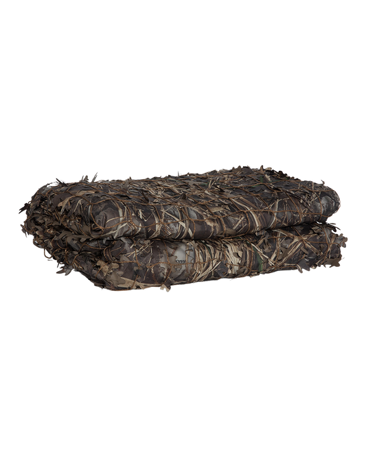 The CamoNet is the base camouflage for the blind. Heavy-duty camo Nylap is paired with high strength nylon netting creating an easy to install and roll up exterior. Weave natural vegetation and Killerweed material to the net for added depth and effectiveness. While the nets work well alone, adding material to the nets helps to break up the rectangular outline of the blind, allows it to blend better with the background, and softens sharp edges that can be a warning sign to waterfowl.