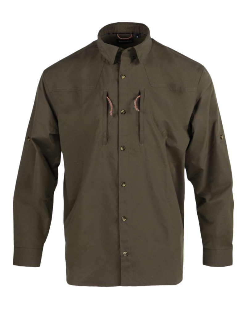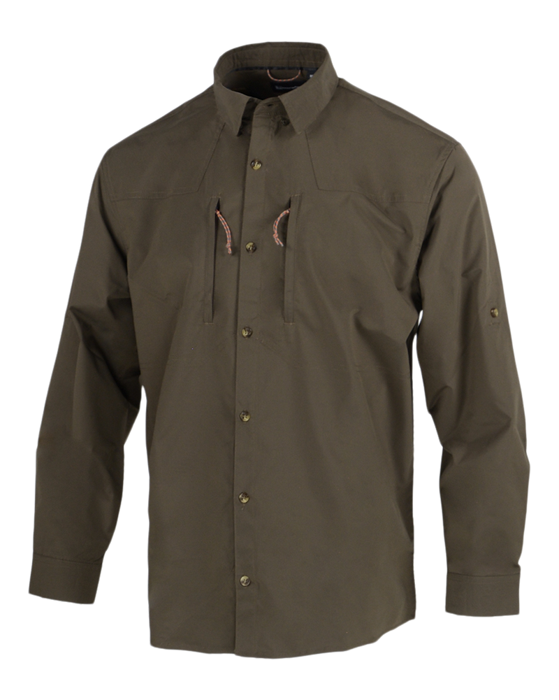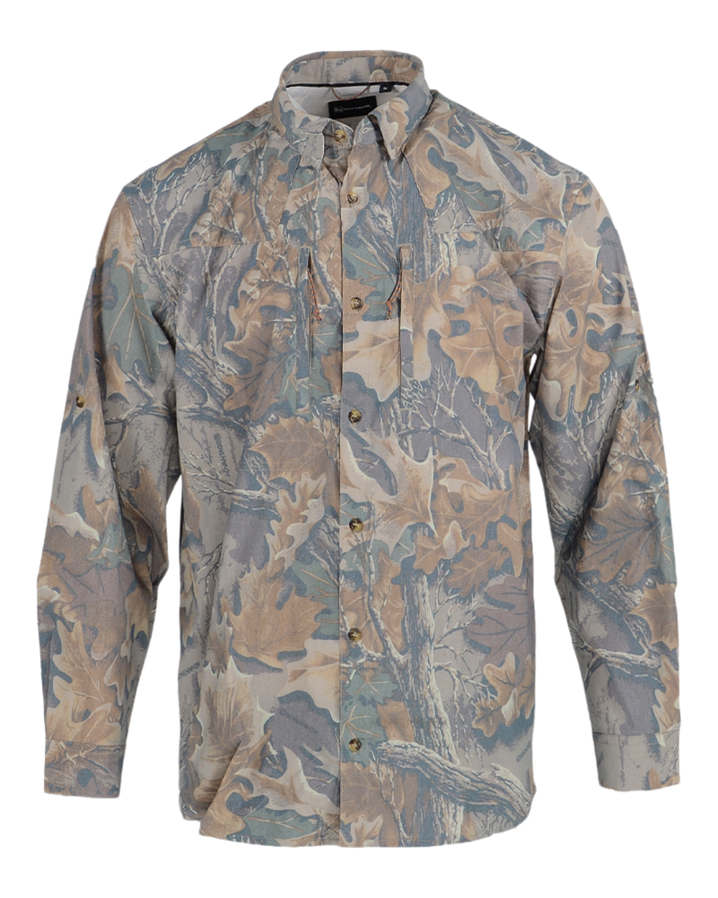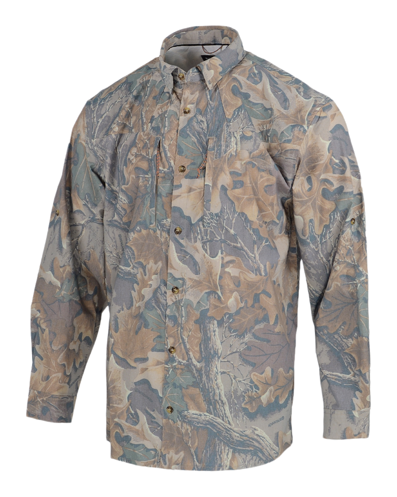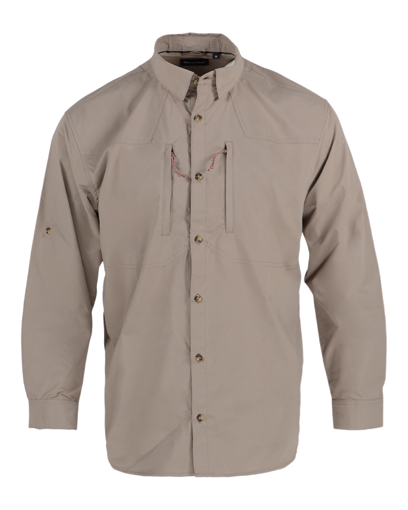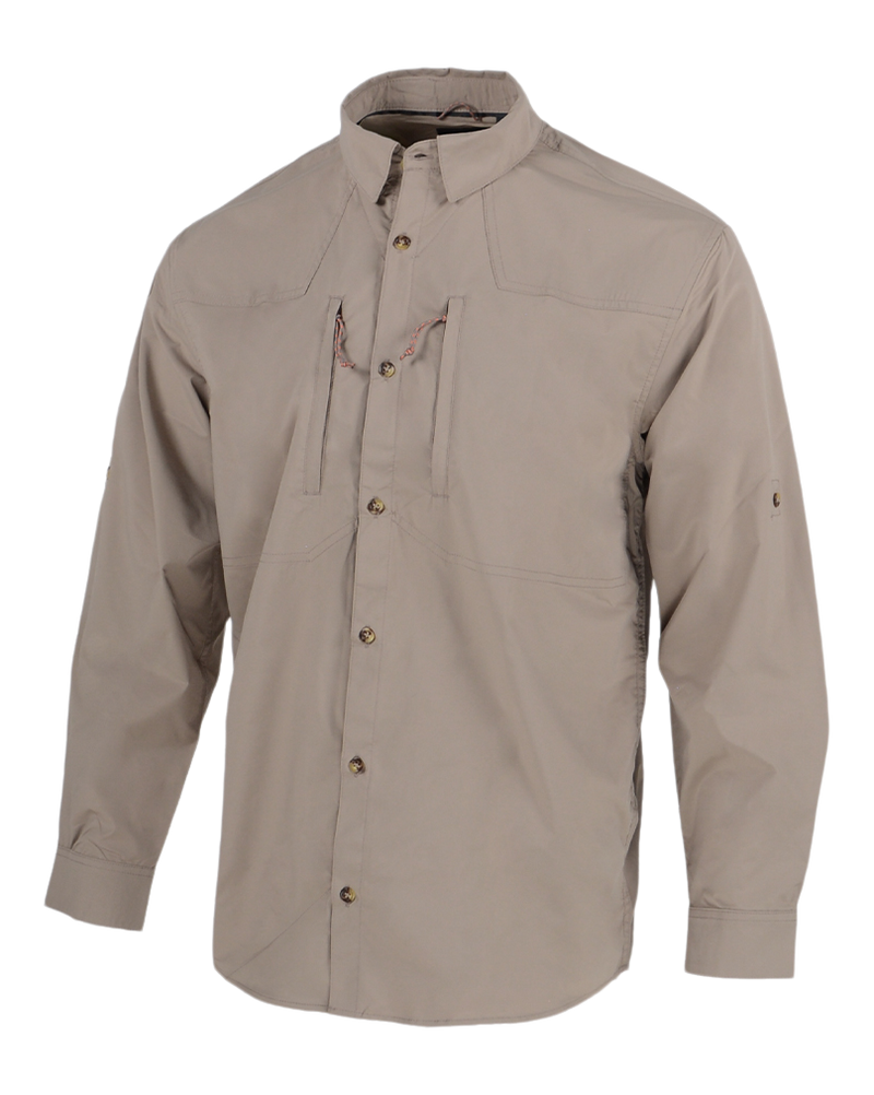 Designed for Anglers This shirt features a relaxed fit with a button-up closure that allows for easy movement and a versatile style. The roll-up sleeve tabs offer an adjustable function for changing temperatures, while two strategically placed vertical zippered chest pockets secure your small essentials, like lures, hooks, or even a phone.