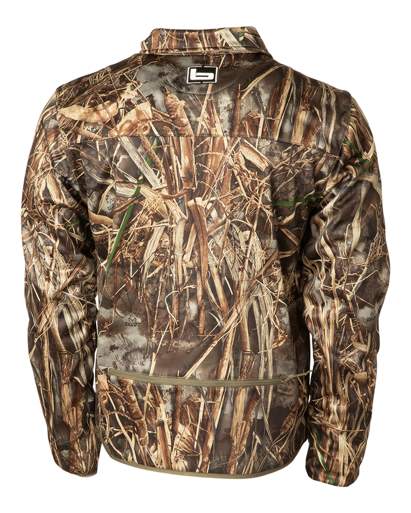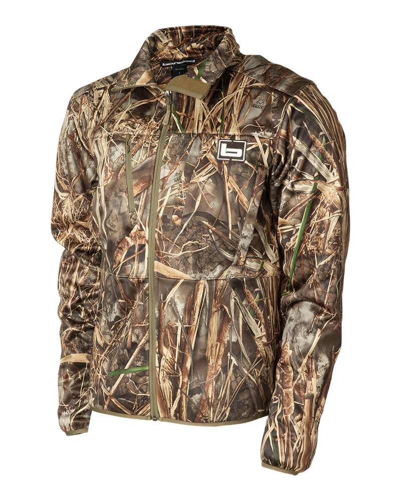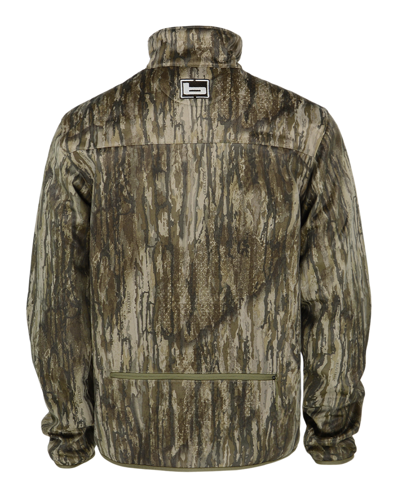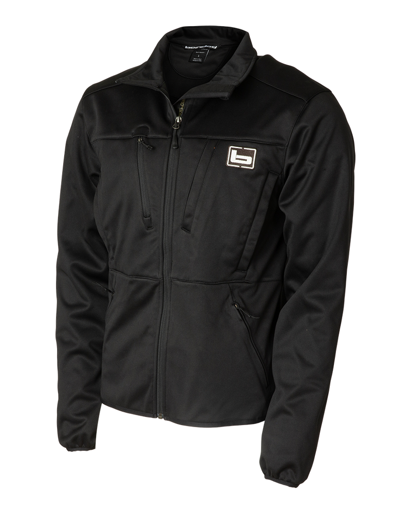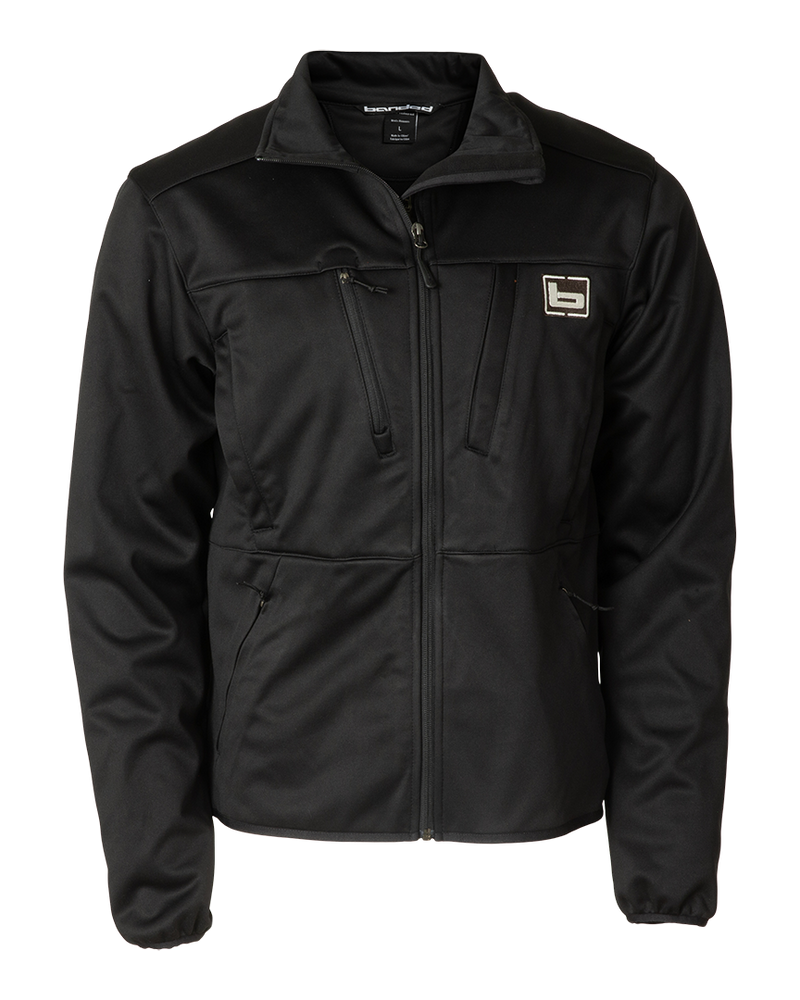 • Stealthy, wind and water-resistant softshell exterior• Wind-breaking mock collar