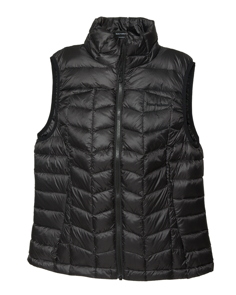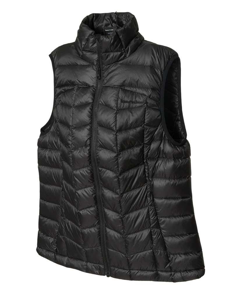 Ultralight Warmth and Durability. Packed with 550+ fill power down insulation for optimal warmth and comfort. Featuring a herringbone quilt design with contrasting body-mapped quilting for soft, body draping and aesthetically flattering effect. Streamlined with two, hidden lower hand-pockets. Warmth sealing stretch armhole cuffs, and armored with ripstop, anti-snag fabric.